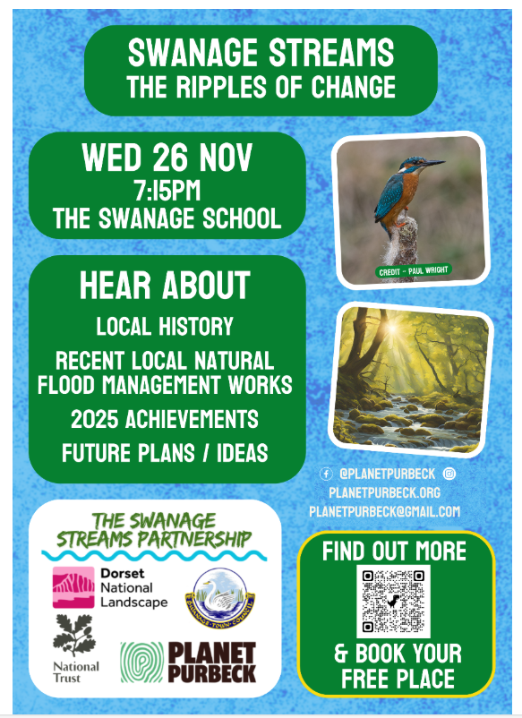 Local community group The Swanage Streams Partnership are hosting a free event including a focus on the natural flood management (NFM) work of the National Trust that might be of interest to local residents in the Future Coast North Swanage area. Link to book
