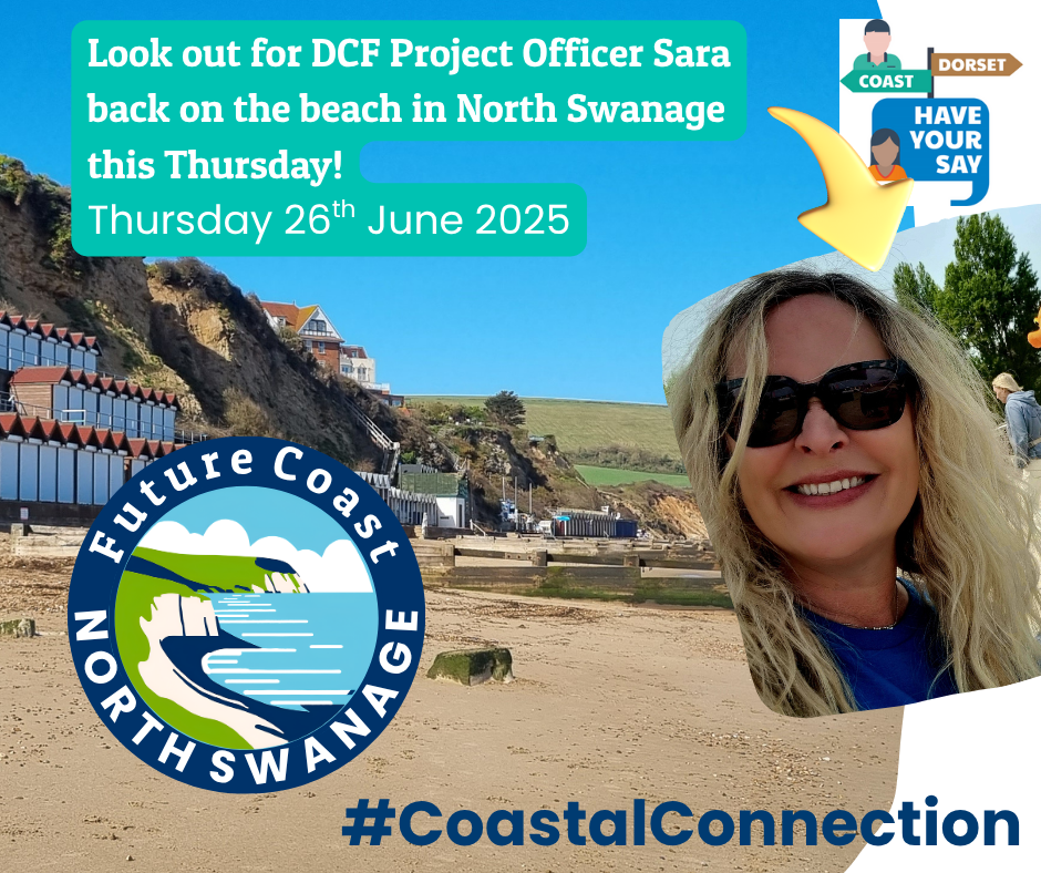 To coincide with the launch of our Future Coast North Swanage baseline survey on the 26th May 2025, you can find Project Officer Sara on the beach during the day near Burlington Chine (at the bottom of Burlington Road) in the big blue DCF gazebo. Come and talk to us about the delivery phase of the project and complete the short survey.