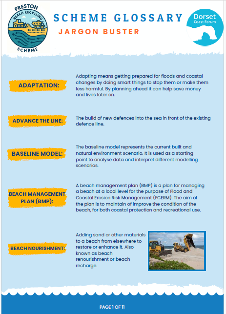 Beach material, such as shingle and sand, can be naturally moved along the coast through a number of coastal processes, such as longshore drift. If the beach material is being used as part of a coastal defence strategy, as at Preston Beach, then this material occasionally needs to be moved back to where it originated from. This is beach recycling. No new material is being added to the beach.