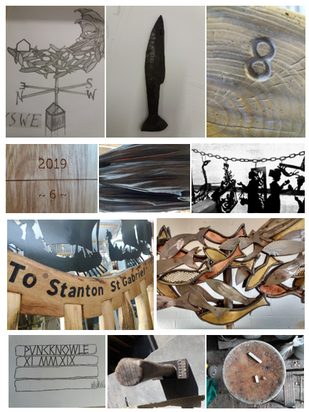 Images of Parish Boundary marker artwork pieces during different design and productions stages (credit: Tara Hansford, Countryside Project Development Officer, Dorset Council)